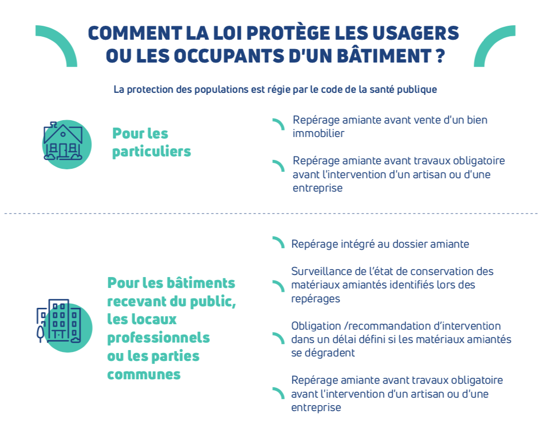 A compter du 16 Juillet 2019 lors de travaux effectué dans votre habitation, dans un immeuble d’habitation collective, dans un bâtiment tertiaire ou autre, le propriétaire, le maître d’ouvrage ou le donneur d’ordre devra faire réaliser un RAT concernant le périmètre et le programme exact des travaux, et faire intervenir des entreprises qui respectent leurs obligations en matière de prévention du risque amiante (« Sous-section 4 » du Code du travail) et de protection de leurs collaborateurs.